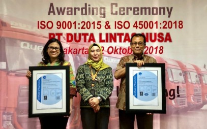 DUTATRANS telah disertifikasi ISO 9001 : 2015 (Manajemen Kualitas) dan ISO 45001 : 2018 (Kesehatan dan Keselamatan Kerja)